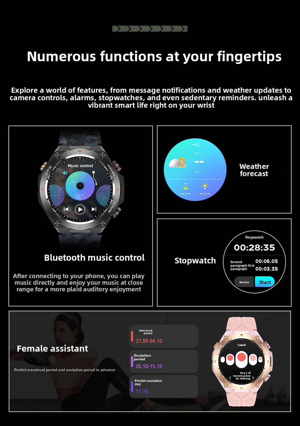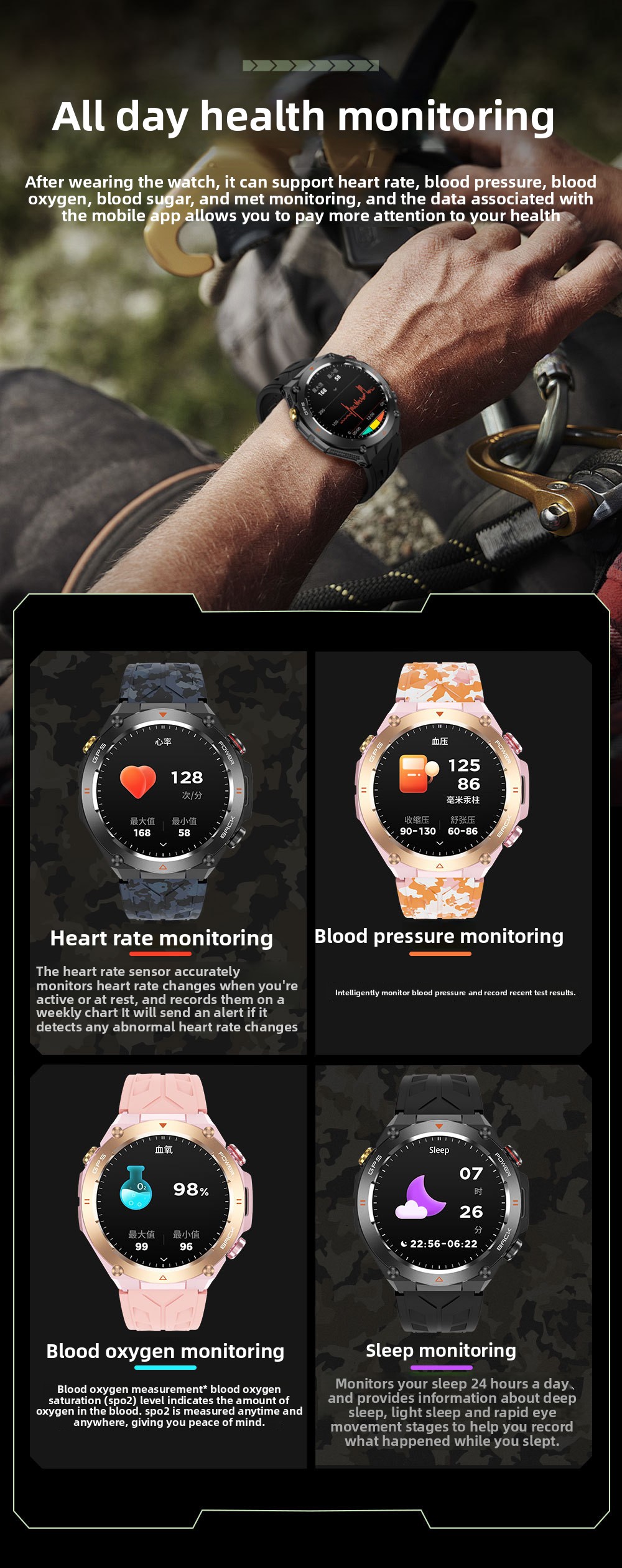 Health Monitoring: Tracks heart rate, blood oxygen, blood pressure, and sleep patterns.