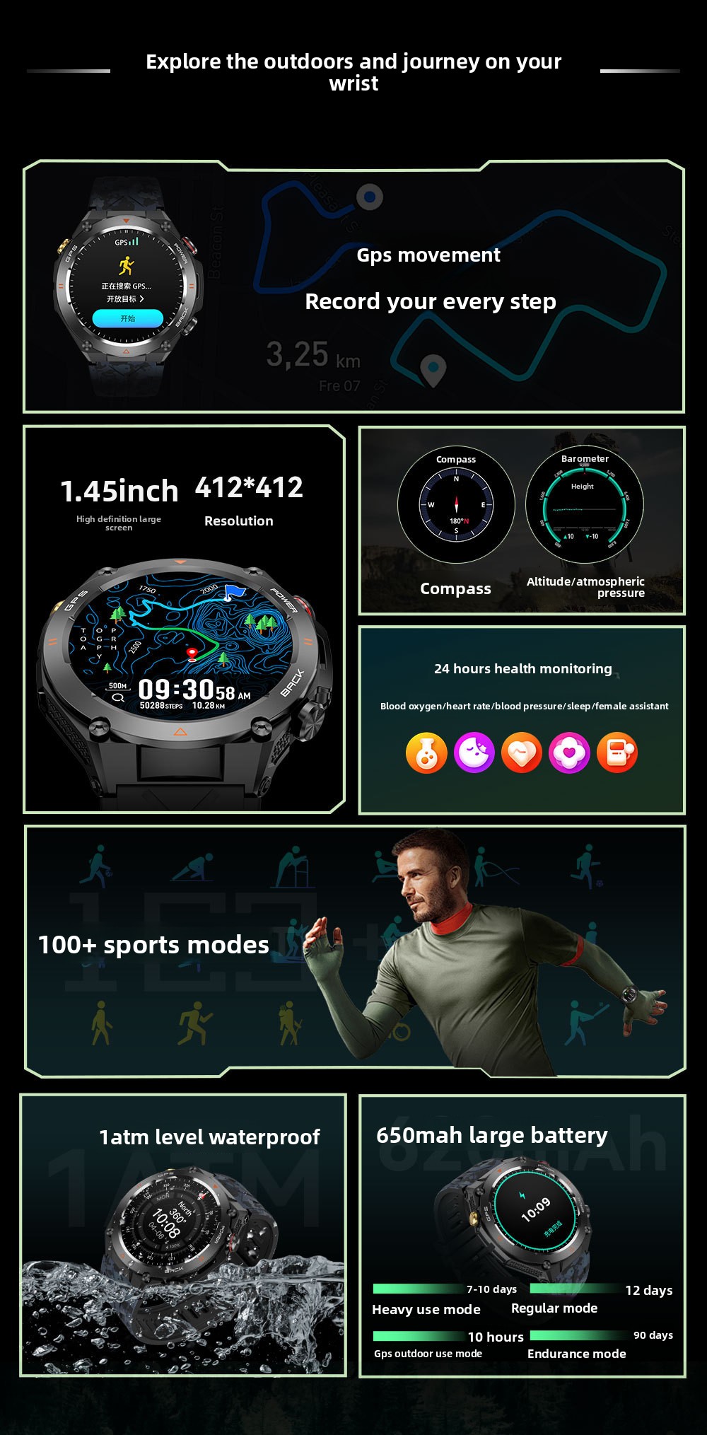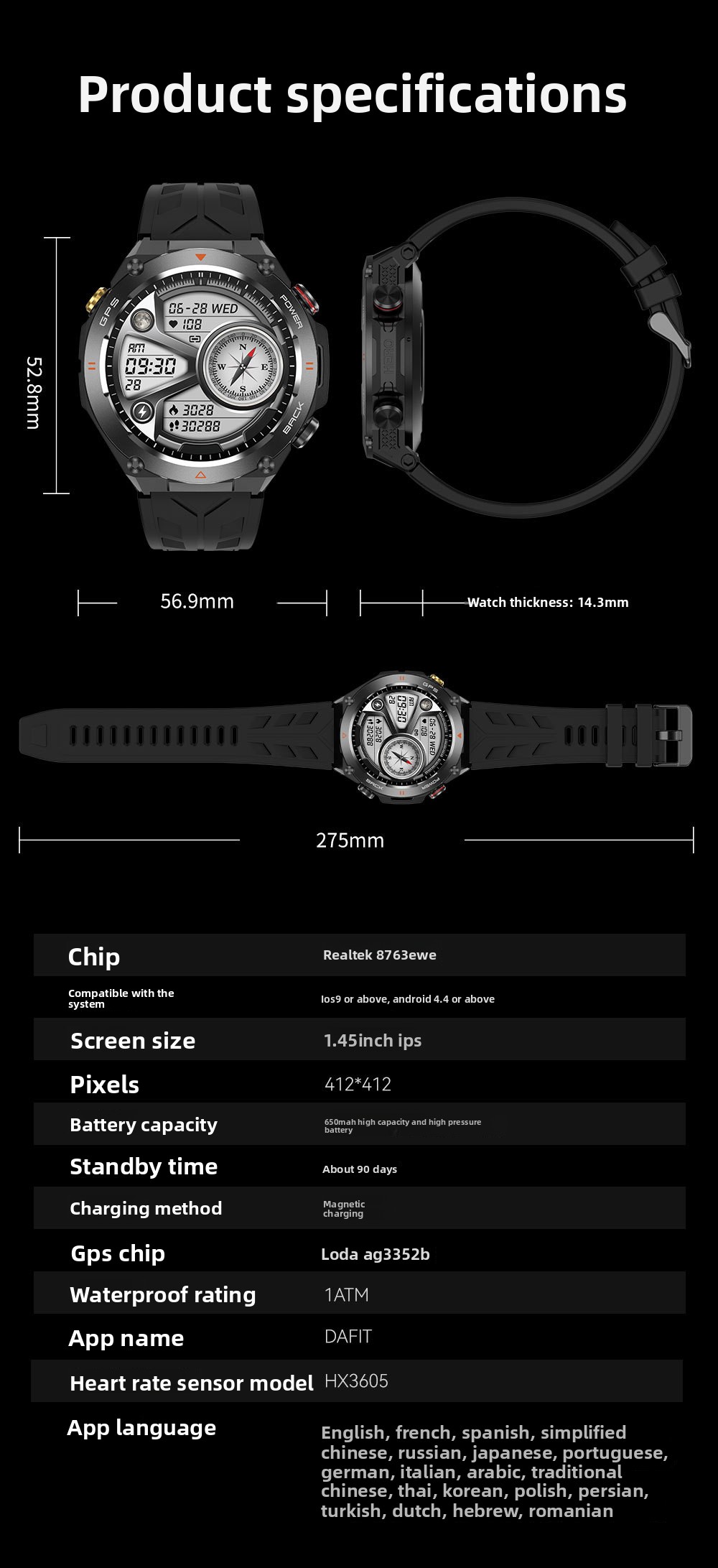 Screen: 1.45-inch IPS display, 412*412 resolution.